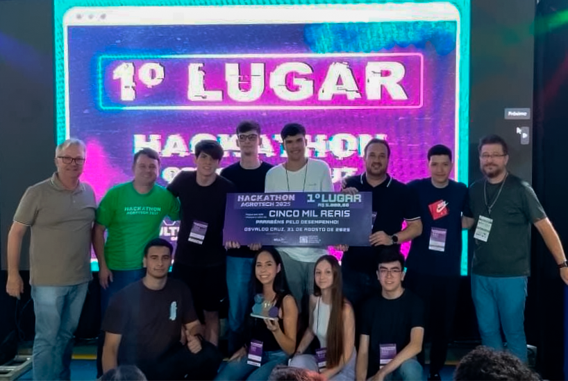A equipe TechField, do Colégio Maxi Dracena, venceu o Hackathon AgroTech 2025, realizado entre 29 e 31 de agosto deste ano. Promovida anualmente pelo Fórum Permanente de Desenvolvimento Econômico e Social de Osvaldo Cruz (SP), Multiplic, a maratona de inovação e de desenvolvimento de soluções tecnológicas para problemas reais teve foco nos desafios do agronegócio da Nova Alta Paulista e teve cerca de 90 competidores distribuídos em 11 equipes multidisciplinares.
