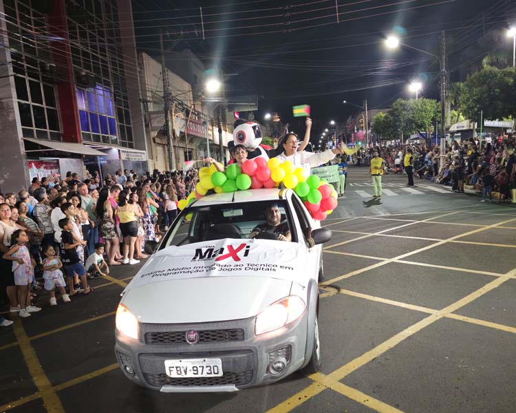 O Colégio Maxi Dracena destacou seu Ensino Médio Integrado ao Curso Técnico em Programação de Jogos Digitais. Um dos representantes desfilou com fantasia de robô, simbolizando o ambiente de inovação, programação e cultura digital trabalhado na unidade.