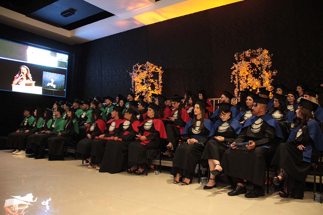 Cada curso teve seu juramento conduzido pelos estudantes representantes, seguido pela outorga de grau e entrega dos canudos pelos respectivos paraninfos. A mesa diretiva realizou ainda a concessão de grau oficial, momento que simboliza a conclusão da formação e o início da trajetória profissional dos novos graduados.
