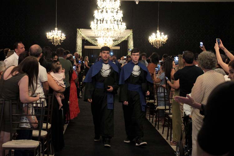 Os formandos entraram em destaque, curso a curso, um momento de especial significado para a primeira turma do Ensino Médio Integrado ao Técnico em Programação de Jogos Digitais do Colégio Maxi - um marco importante para a unidade, reforçando o compromisso da instituição com a formação tecnológica e inovadora.