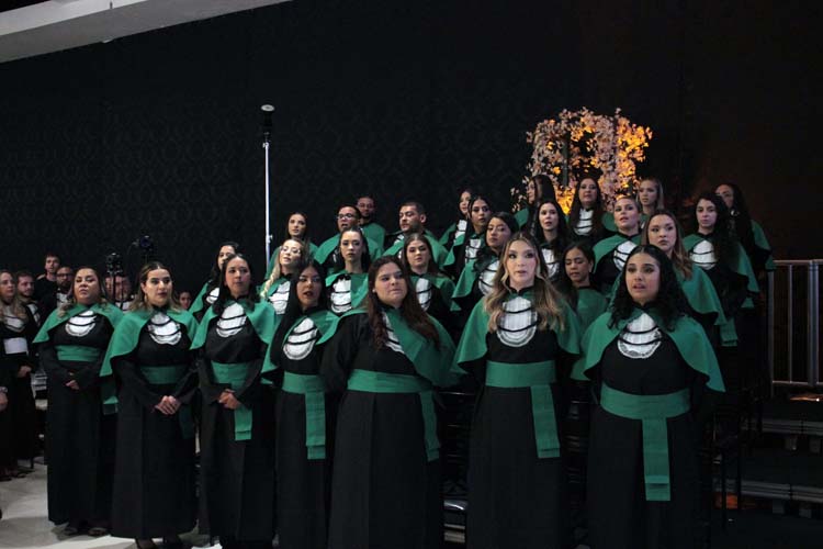 Um dos momentos mais emocionantes da noite foi a entrada dos formandos: a 78ª turma de Pedagogia, a 20ª turma de Enfermagem, a 17ª turma de Educação Física, a 17ª turma de Psicologia e a 6ª turma de Análise e Desenvolvimento de Sistemas, esta última nomeada em homenagem póstuma ao aluno Lucas Marques Gonçalves.