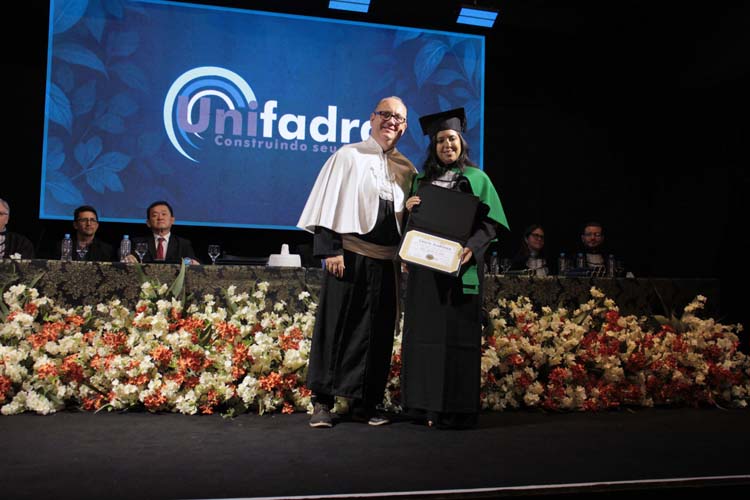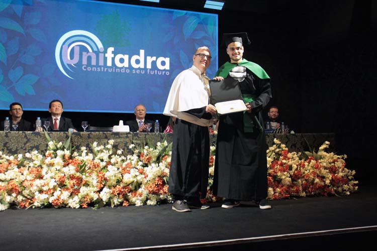 A noite também foi marcada pela entrega das Láureas Acadêmicas da Unifadra, concedidas aos alunos de melhor desempenho de cada curso: