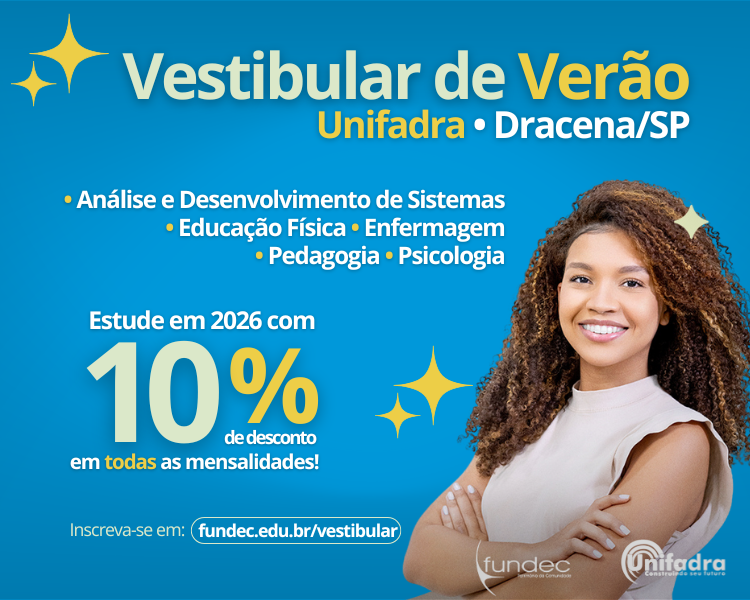 Unifadra Dracena: vestibular aberto com 10% de desconto para estudar em 2026