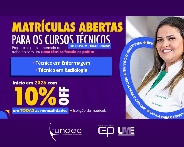 O CEP/UME segue com matrículas abertas para os cursos Técnico em Enfermagem e Técnico em Radiologia. As aulas começam no dia 09 de fevereiro, ampliando as oportunidades de forma&cced ...