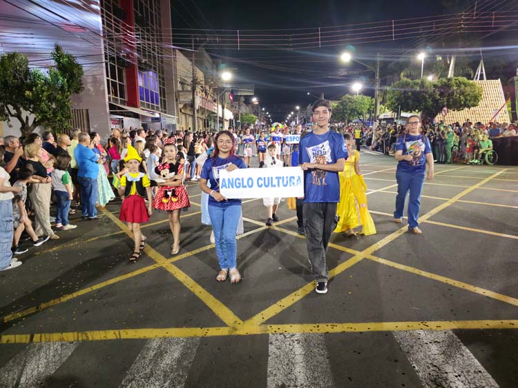 No Desfile Cívico, o colégio Anglo-CID apresentou uma composição que relacionou passado e presente da educação. Em destaque, o primeiro uniforme da escola e o uniforme atual; um carro temático com equipamentos históricos, como mimeógrafo e um modelo didático de planetário em madeira. Em diálogo com o presente, a escola trouxe a representação de práticas de ensino e aprendizagem baseadas em metodologias ativas, por meio do programa Fera em Ação. Também foram apresentados projetos que integram o cotidiano escolar, como Anglo Dance, Projeto Canções, Esportes e Anglo Cultura.