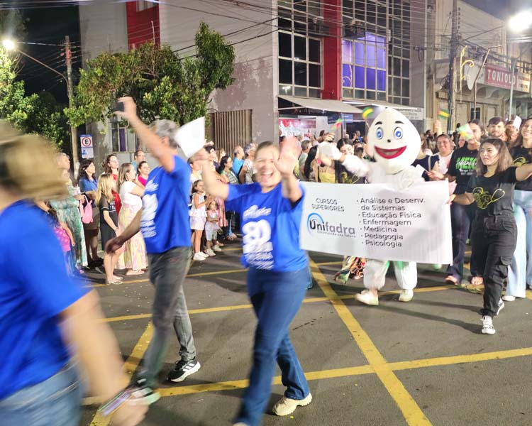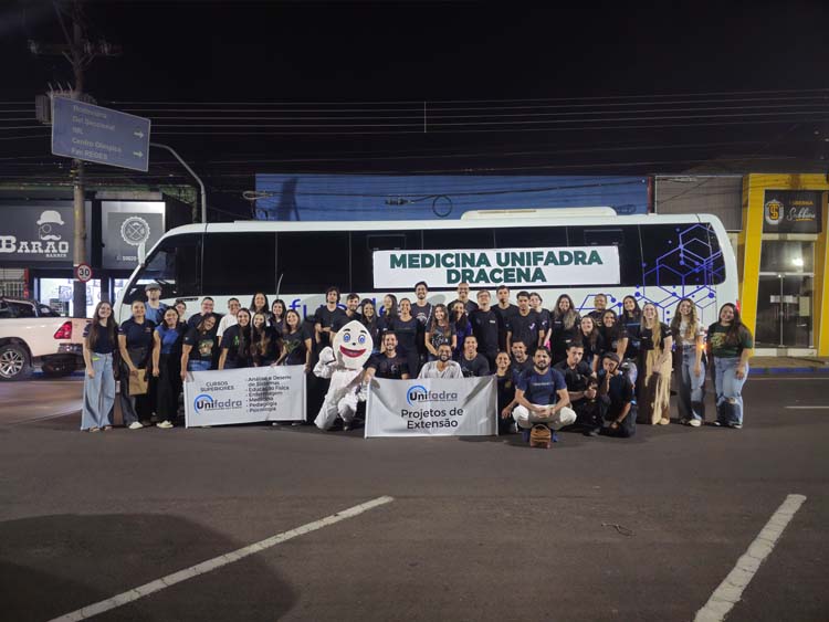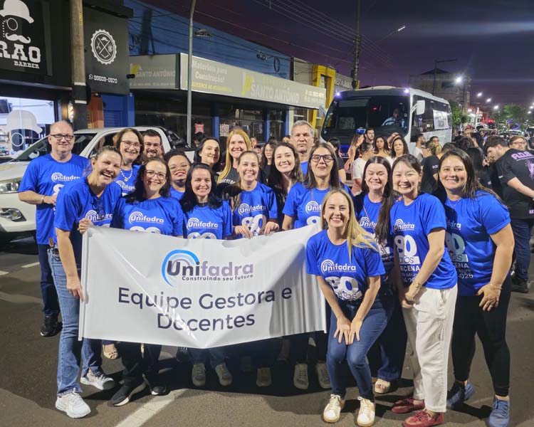 Representando os cursos superiores, docentes, equipe gestora e alunos de todos os cursos da Unifadra participaram do desfile: Análise e Desenvolvimento de Sistemas, Educação Física, Enfermagem, Pedagogia, Psicologia e Medicina. O ônibus utilizado pelos estudantes integrou a apresentação, reforçando a identidade acadêmica da instituição e a abrangência de sua atuação.