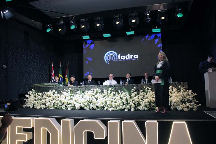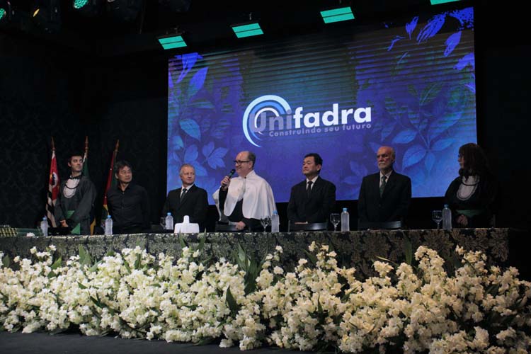 A solenidade contou com a presença da Mesa de Honra composta pelo diretor acadêmico da Unifadra, Prof. Dr. Enio Garbelini; pelo presidente do Conselho de Curadores da Fundec, Arildo Luciano Gerlin da Silva; pelo diretor executivo da Fundec e patrono da turma, Edson Hissatomi Kai; pelo vice-prefeito de Dracena, Jaime Nakano; pelo vereador Milton Polon representando a Câmara Municipal; pela coordenadora do curso, Profa. Dra. Marilda Aparecida Milanez Morgado de Abreu, e pelo paraninfo da turma, Prof. Me. Marcelo Valentim Mansano.