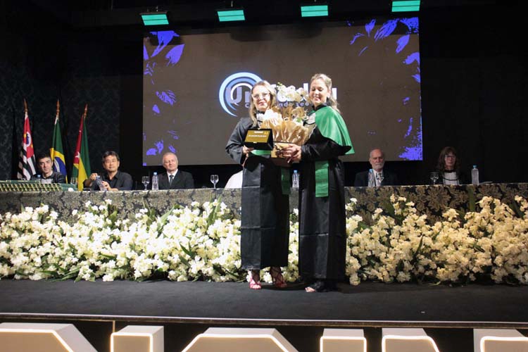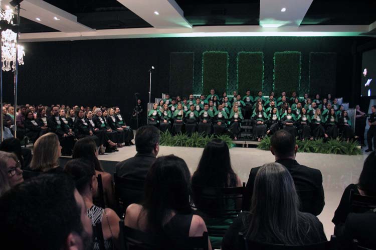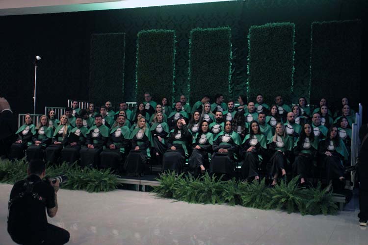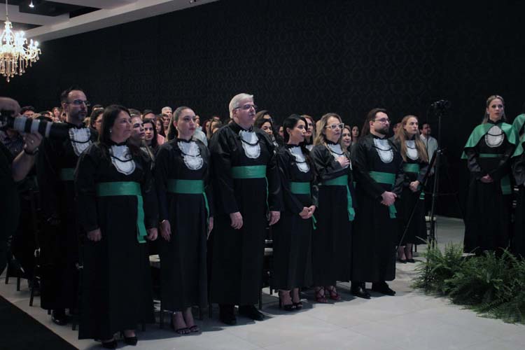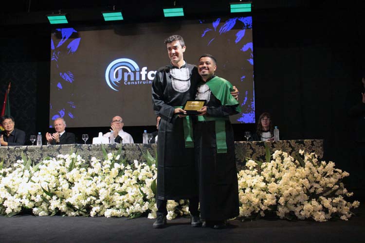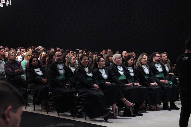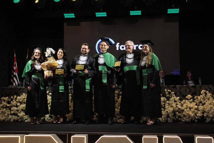 Professores que marcaram a história da turma — Prof. Dr. Caio Ferreira de Oliveira, Profa. Me. Dayane Araújo Luzia e Prof. Dr. Luiz Gustavo Peron Martins — também receberam homenagens especiais entregues pelos formandos.