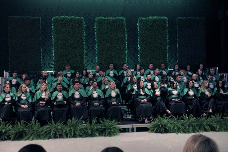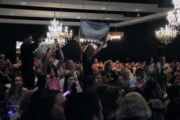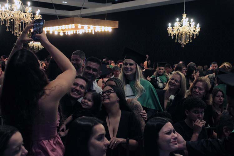 Durante a cerimônia, os formandos receberam seus canudos e participaram do juramento profissional, conduzido por Ana Cláudia Dela Cruz, reafirmando o compromisso ético da prática médica. Em seguida, quatro discursos emocionaram o público, representando diferentes dimensões da jornada da turma: