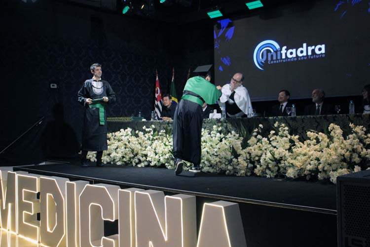 O diretor acadêmico, Prof. Dr. Enio Garbelini, e as demais autoridades parabenizaram a turma, reforçando a relevância do curso de Medicina da Unifadra para o desenvolvimento regional e celebrando a nova turma de médicos de Dracena que, a partir daqui, assume um compromisso com a sociedade.