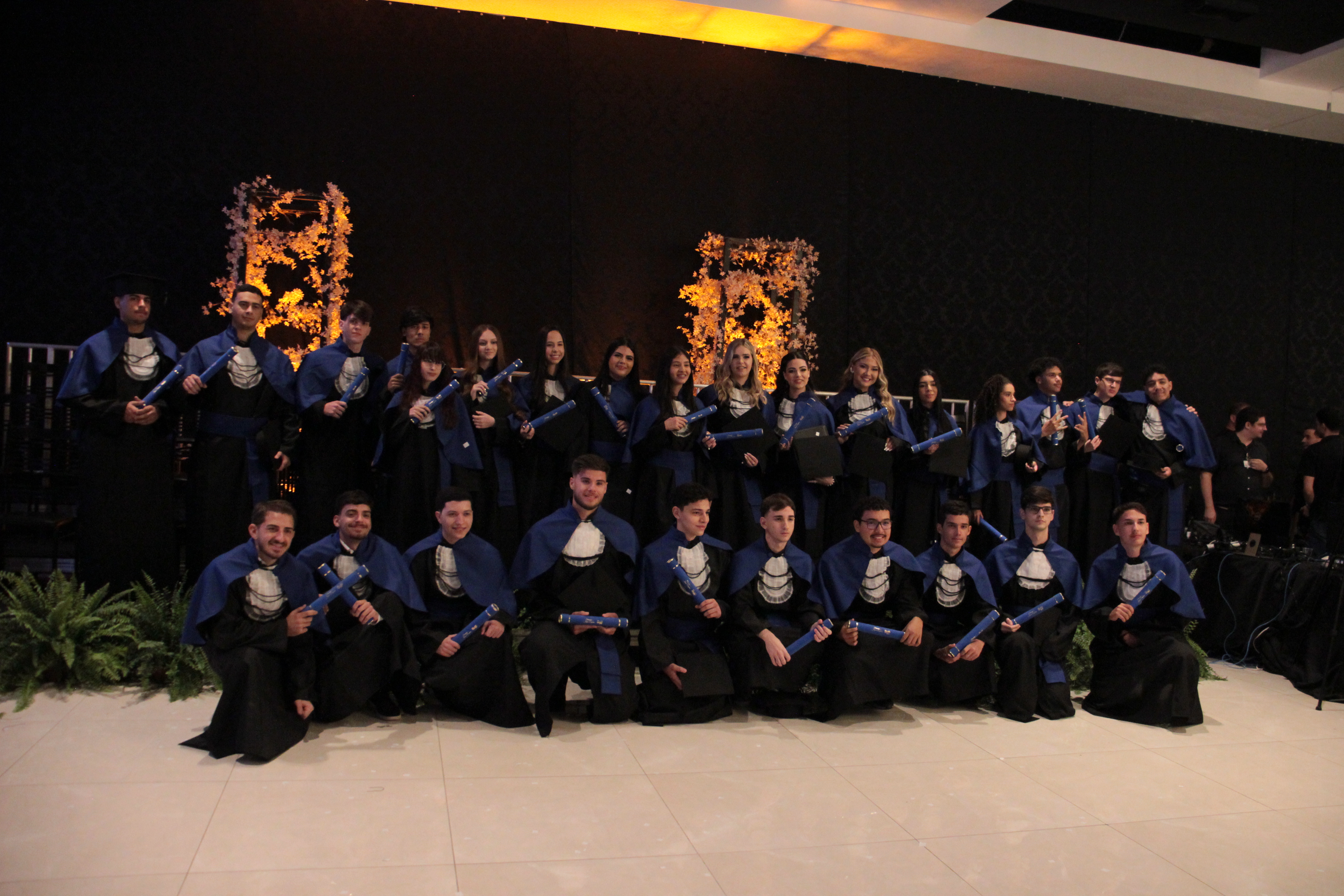 Os formandos entraram em destaque, curso a curso, um momento de especial significado para a primeira turma do Ensino Médio Integrado ao Técnico em Programação de Jogos Digitais do Colégio Maxi - um marco importante para a unidade, reforçando o compromisso da instituição com a formação tecnológica e inovadora.