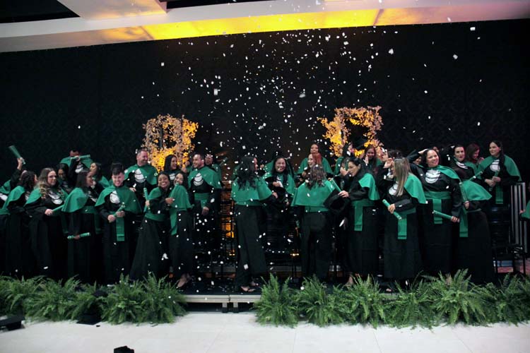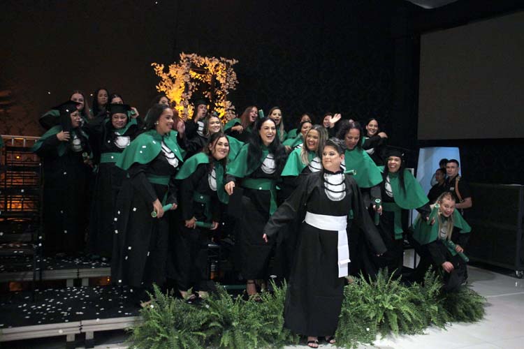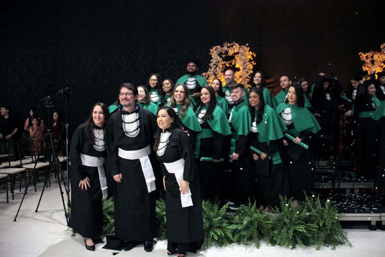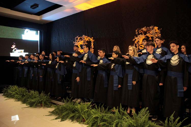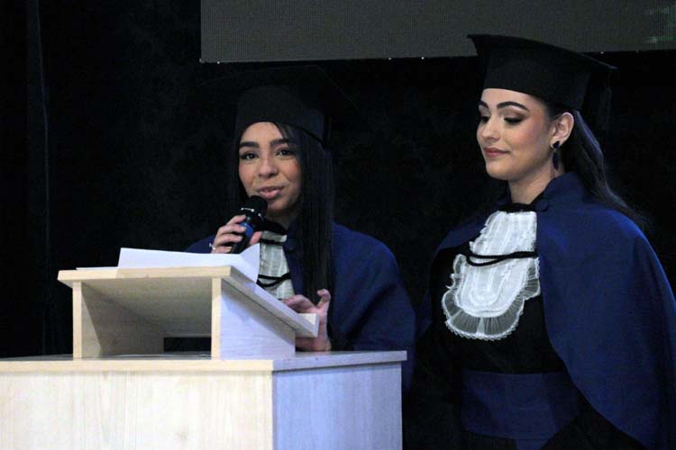 Durante a solenidade, foram proferidos os juramentos dos três cursos, seguidos da entrega dos certificados aos formandos, conduzida pelos respectivos paraninfos. A patronesse dos Formandos de 2025, Arlene Gonçalez Tenório Etto, fez seu pronunciamento e destacou que a formatura encerra um ciclo e inaugura novos caminhos. “A formatura é um rito de passagem decisivo. Que cada formando busque crescimento individual alinhado a um propósito coletivo, usando o conhecimento e a ética para transformar realidades”.