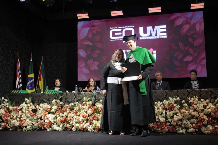 O CEP/UME – Centro de Educação Profissional “Francisco Graziano Filho” e o Colégio Maxi realizaram, no dia 10 de dezembro, no salão AGD Eventos, a solenidade de formatura dos concluintes dos cursos técnicos em Enfermagem e Radiologia, além do Ensino Médio Integrado ao Curso Técnico em Programação de Jogos Digitais. A cerimônia, marcada por emoção e reconhecimento, reuniu autoridades, familiares, professores e convidados para celebrar a trajetória dos estudantes.