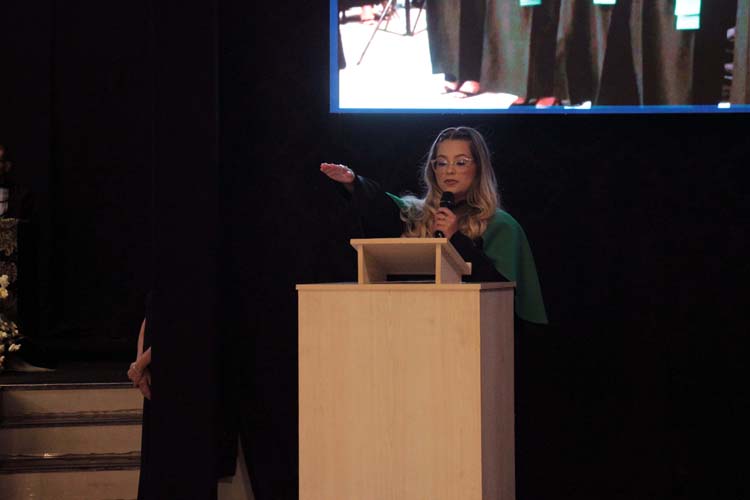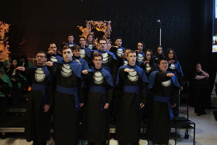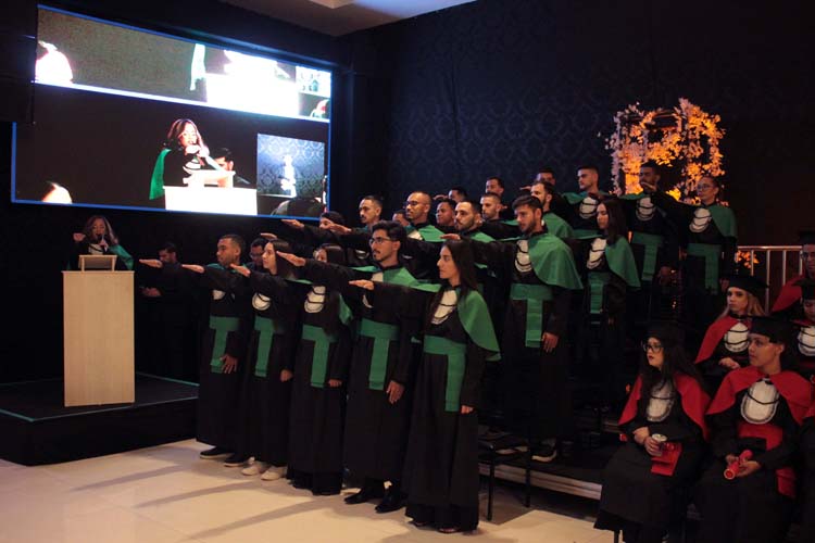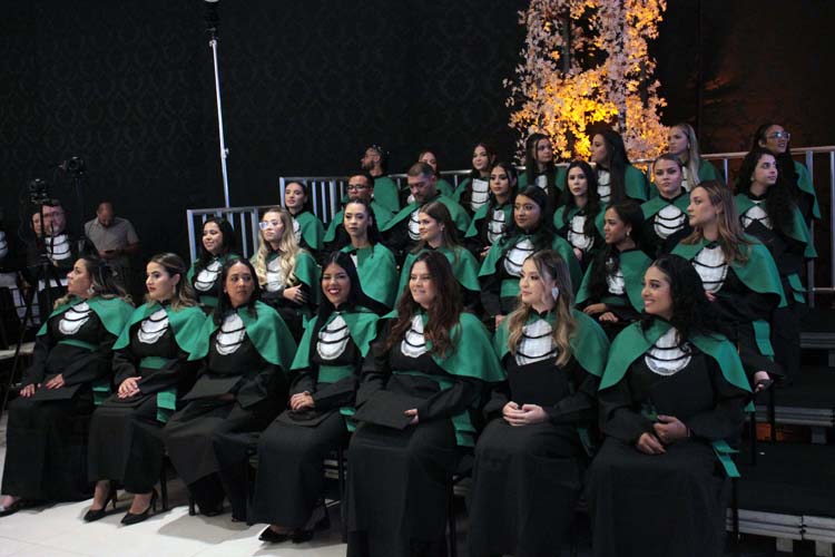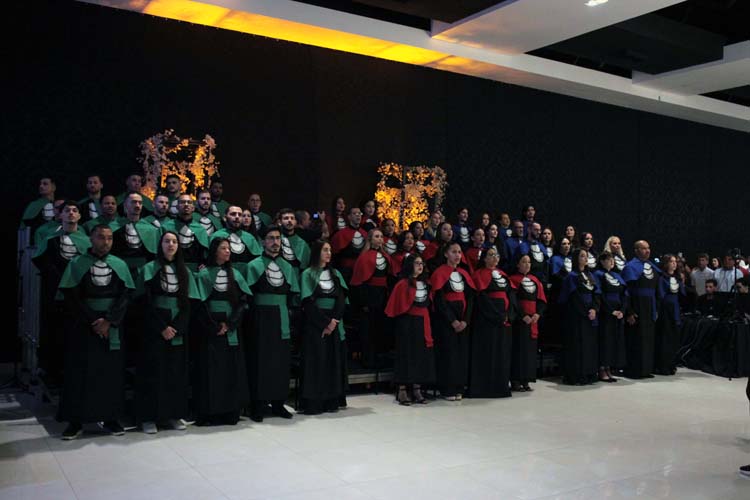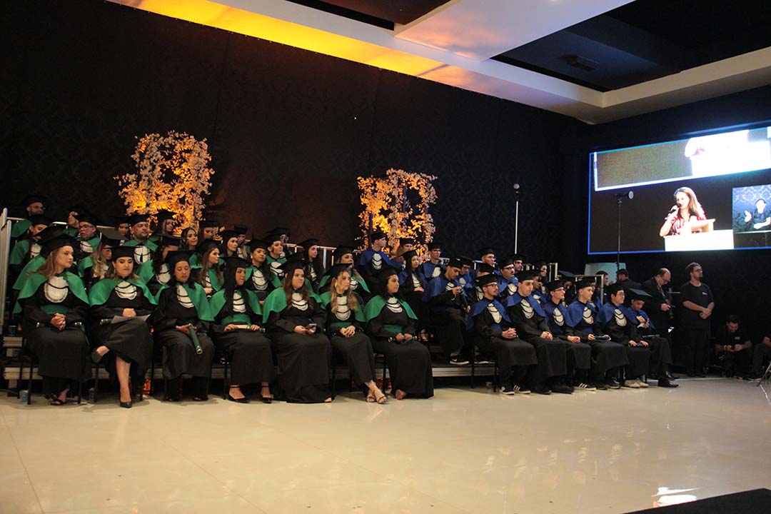 Cada curso teve seu juramento conduzido pelos estudantes representantes, seguido pela outorga de grau e entrega dos canudos pelos respectivos paraninfos. A mesa diretiva realizou ainda a concessão de grau oficial, momento que simboliza a conclusão da formação e o início da trajetória profissional dos novos graduados.