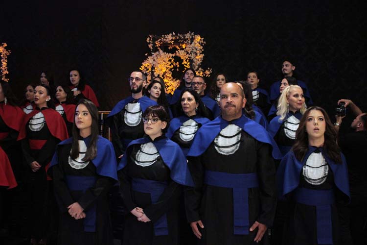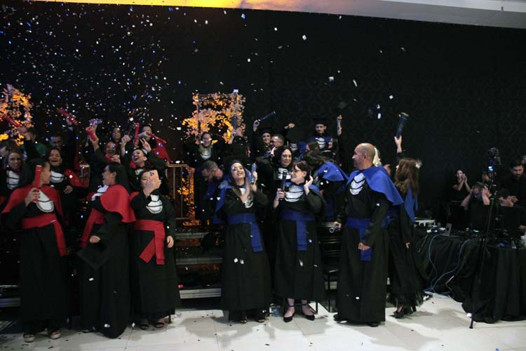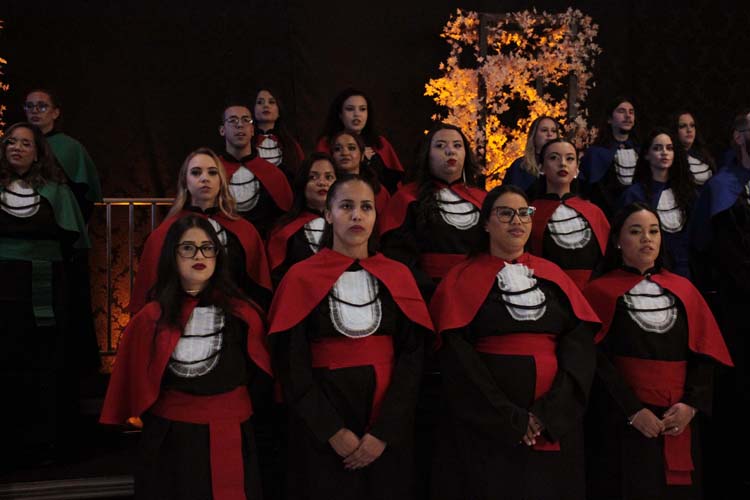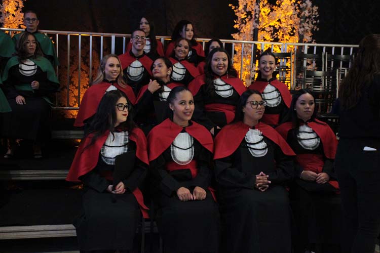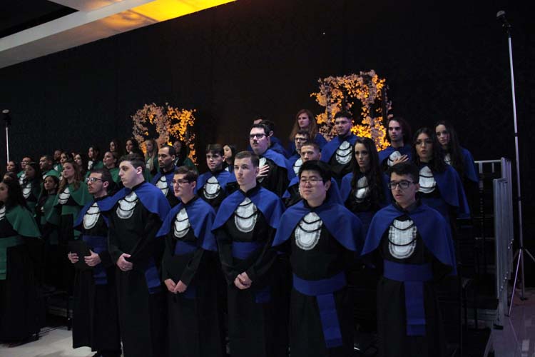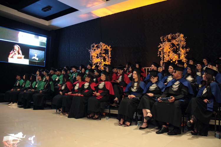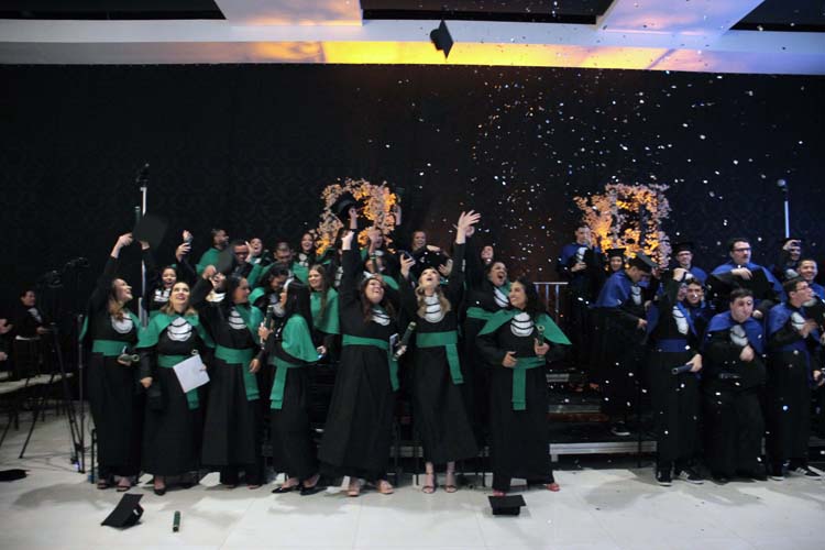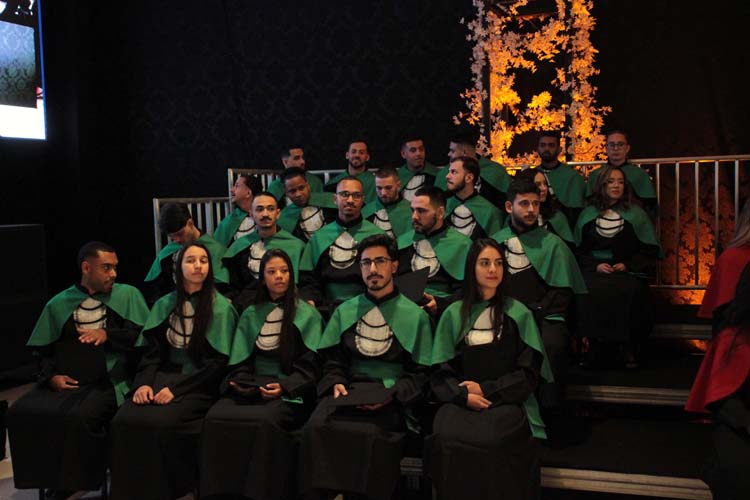 Um dos momentos mais emocionantes da noite foi a entrada dos formandos: a 78ª turma de Pedagogia, a 20ª turma de Enfermagem, a 17ª turma de Educação Física, a 17ª turma de Psicologia e a 6ª turma de Análise e Desenvolvimento de Sistemas, esta última nomeada em homenagem póstuma ao aluno Lucas Marques Gonçalves.