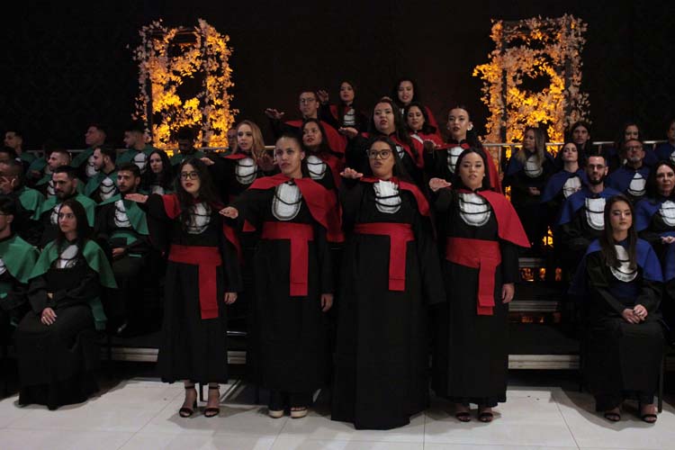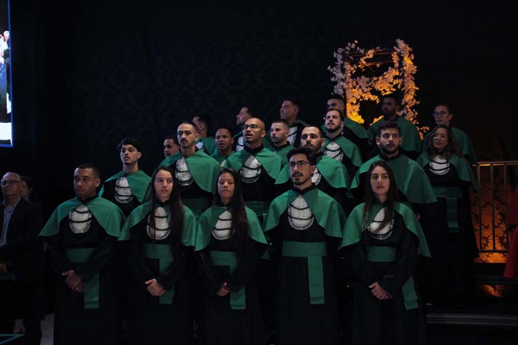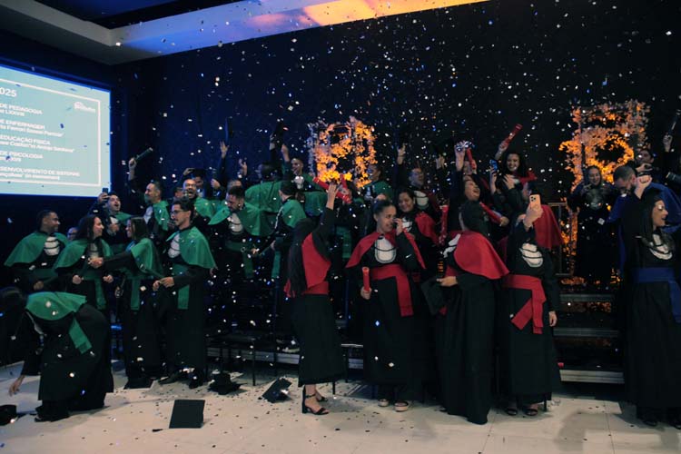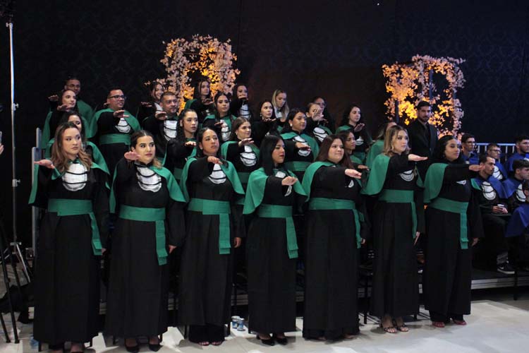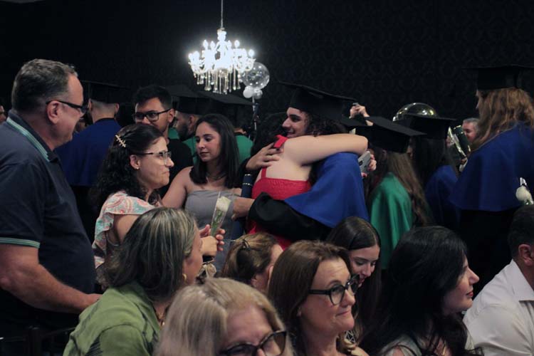 Outro destaque foi o pronunciamento do orador das turmas, Marco Antonio da Silva, formando do curso de Psicologia, que emocionou o público ao representar a voz coletiva dos concluintes. Logo depois, todos os formandos realizaram uma homenagem especial às famílias, entregando flores como gesto de gratidão pelo apoio recebido ao longo dos anos de estudo.