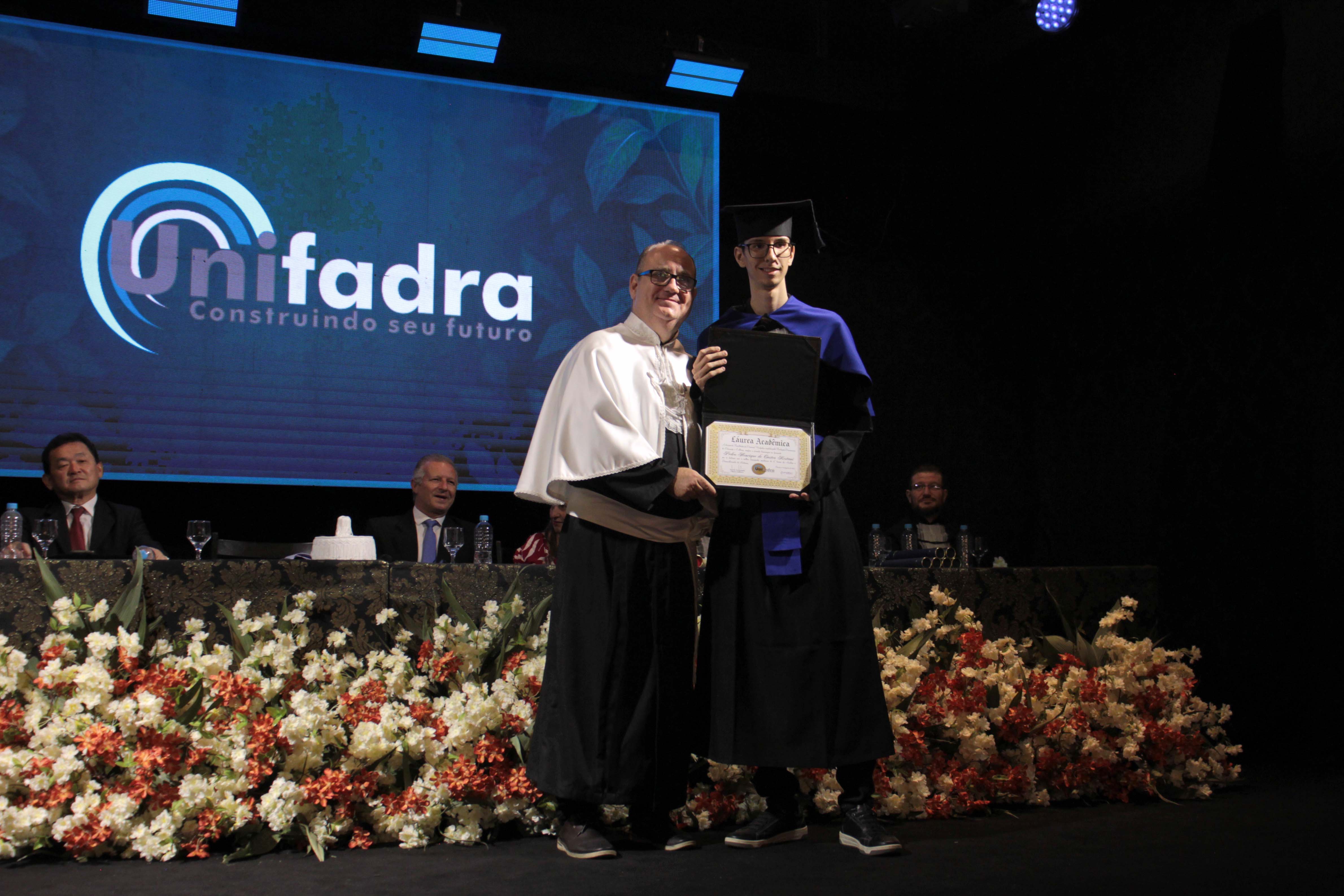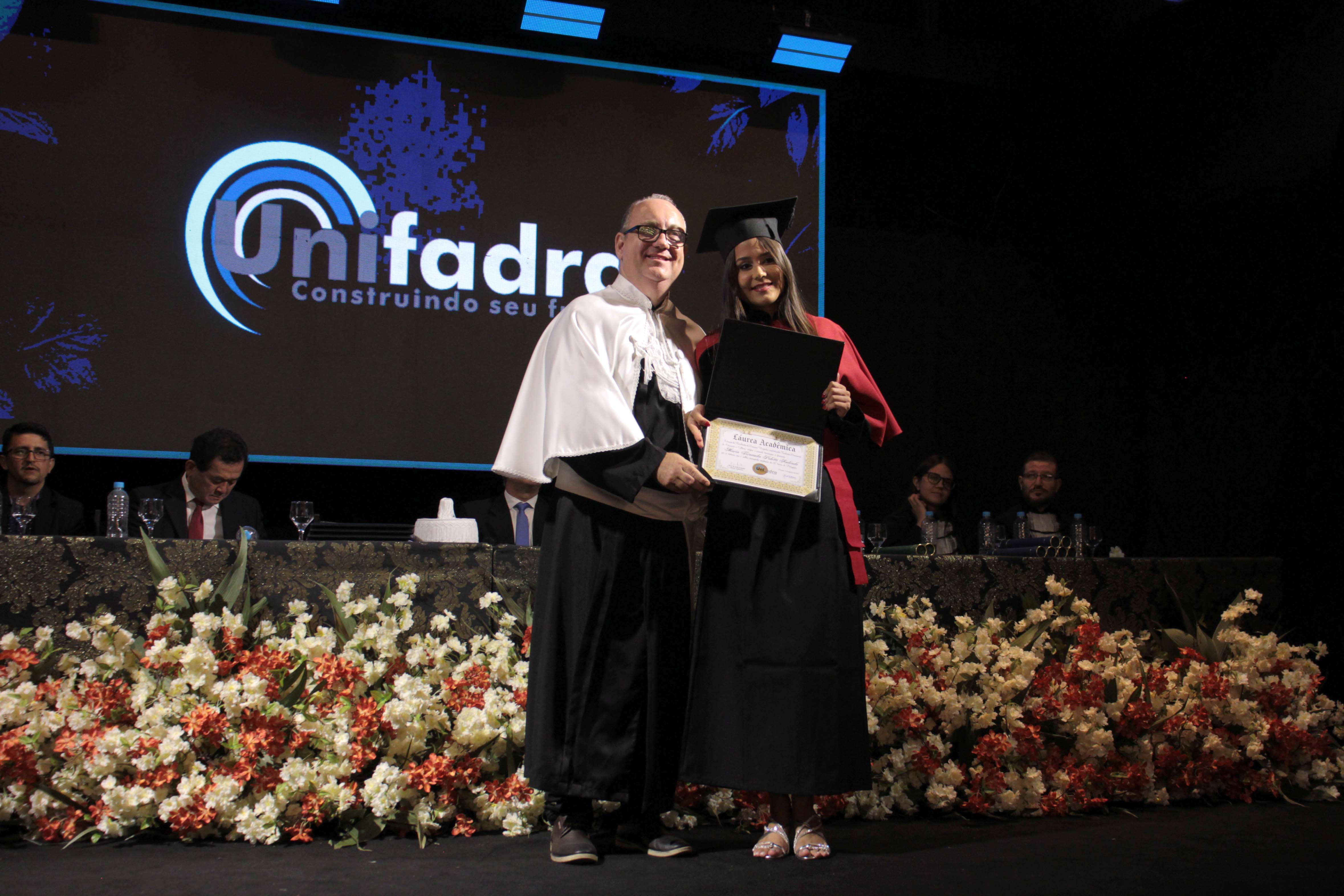 A noite também foi marcada pela entrega das Láureas Acadêmicas da Unifadra, concedidas aos alunos de melhor desempenho de cada curso: